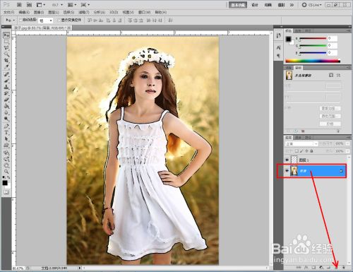 导入我们要进步履漫化的图片,将图片图层拉至【新建图层】图标处,新建一个图层副本;