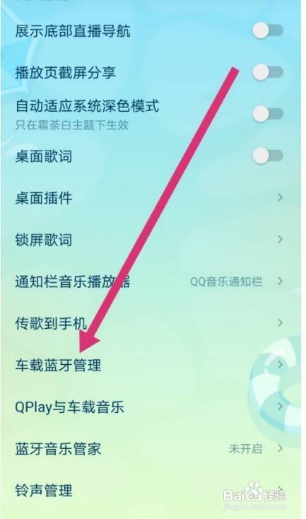 打开标识表记标帜为车载蓝牙的开关也可以开启毗连后主动进入驾驶模式的开关。