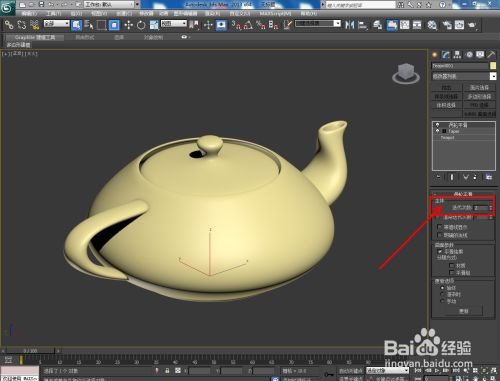 点击【建立】-【几何体】-【茶壶】,按图示绘制一个茶壶模子并设置好茶壶的各个参数;