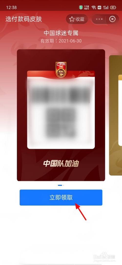 领取当作功,这样就领取中国红付条目码为中国队加油当作功。
