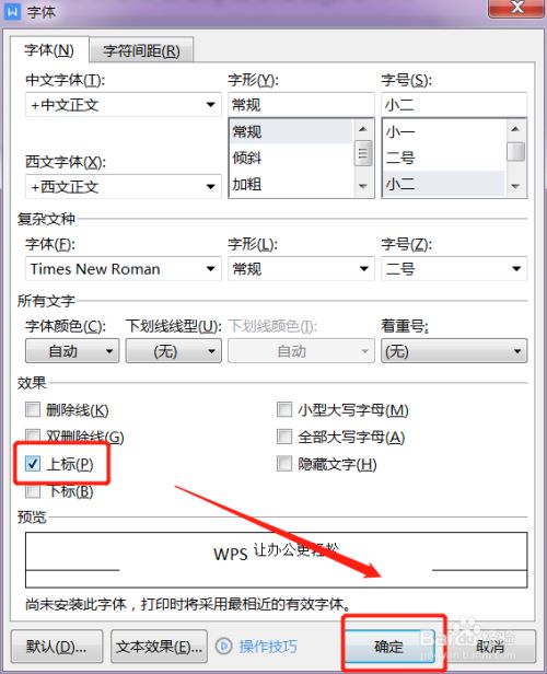在字体对话框勾选上标,点击确定,即可在页面中输入㎡符号。