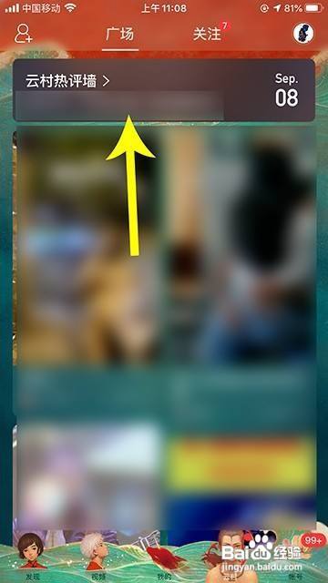 进入云村后就回到看顶部的云村热评墙,点击热评墙进入。
