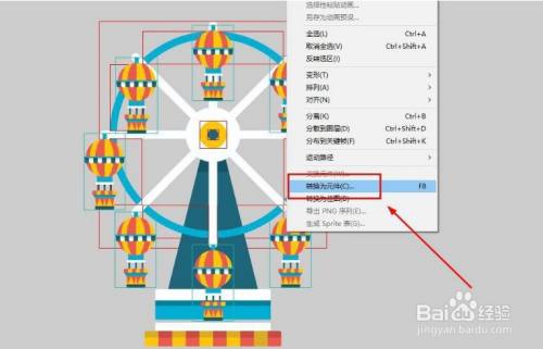 完当作素材导入后,选择需要动弹的部门,鼠标右键点击转换为元件按钮