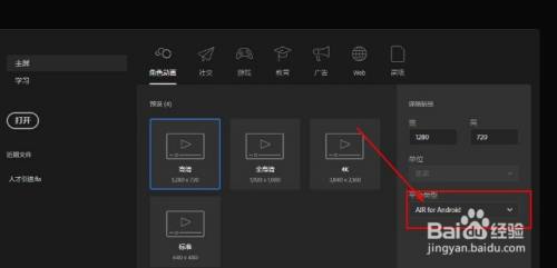 打开界面后,在脚色动画中新建一个Actionscript3.0平台文档