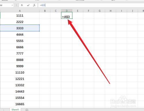 当想让列号可以改变,行号不变时,可以在行号前加$,例如A$3。