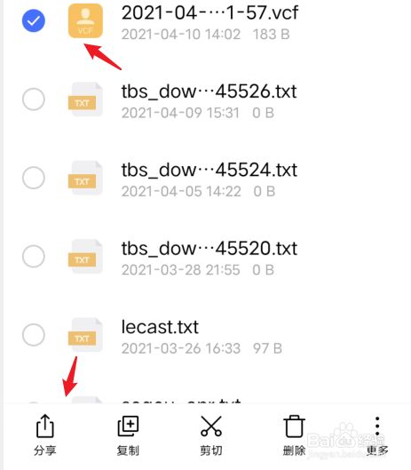 长按导出的联系人,点击下方的分享。