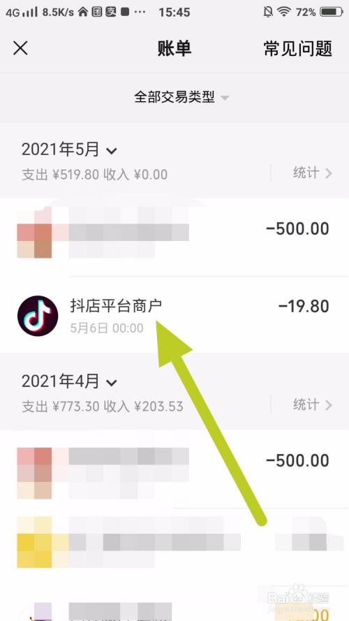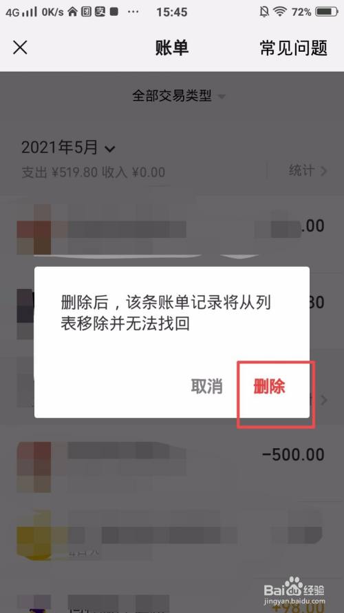 长按住要删除的账单记实;