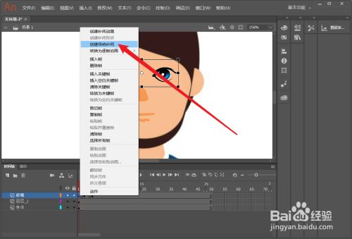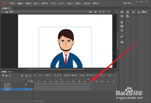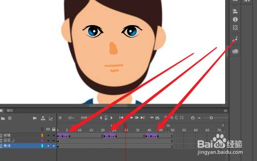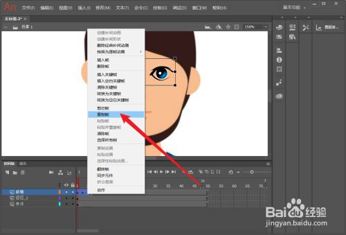 然后把播放头移动到第3帧,插入一个关头帧,然后我们把眼睛改为闭眼状况。