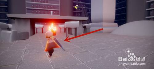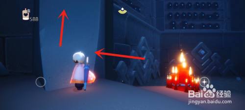 来到禁阁一楼四人门的墙柱这里,顺着墙柱往上飞。