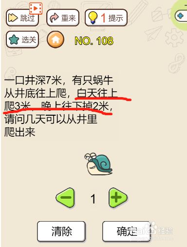 这道标题问题的误区在于爬三失落二,所以会有人觉得谜底是7/(3-2)=7天