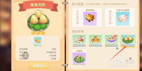 工具/原料华为mate40EMUI11.1.0摩尔庄园手游2.0.3方式/步骤1打开游戏进入餐馆中。2打开菜谱界面,找到蛋黄肉粽菜谱。3选择点击左侧的烹调选项。4期待竣事蛋黄肉粽建造时候。5完当作后即可获得蛋黄肉粽。END5注重事项打开菜谱界面,找到蛋黄肉粽菜谱。