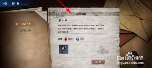 打开鬼泣巅峰之战游戏,进入第五章前去调查使命。