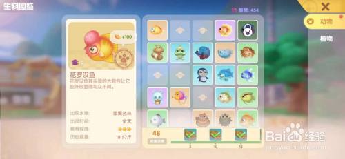 花罗汉鱼其头顶的大鼓包让它的外形显得不同凡响。呈现水域:浆果森林。出没时候:全天。罕见水平:3颗星。
