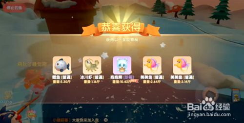 利用渔网垂钓每次可获得5个品种的鱼,还可以获得宝箱等奖励。