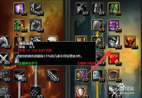 接下来就是防护系了,我们第三排的强化复仇不需要点。