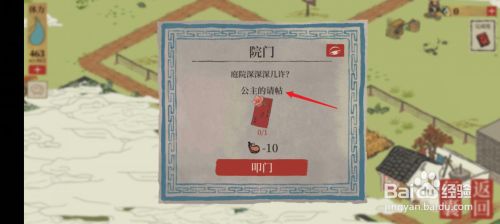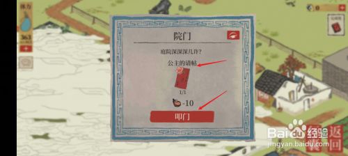 工具/原料华为nova6EMUI11.0.0江南百景图1.4.3方式/步骤1从姑苏府出发【阊门】探险。2解锁院门需要【公本家儿的请柬】。3【扶起倒下的桌子】去抓毛贼。4点击【扶起来】。5玩一个小游戏抓住毛贼。6抓住毛贼后即可获得【公本家儿的请柬】当作功打开院门。END