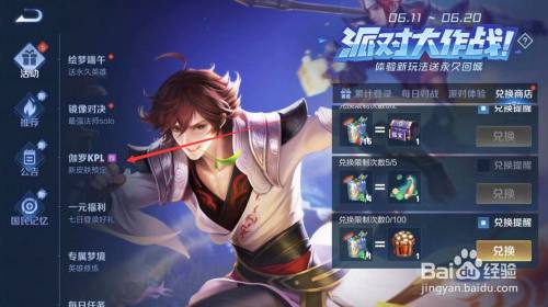 进入到活动后,点击左侧的“伽罗KPL”选项