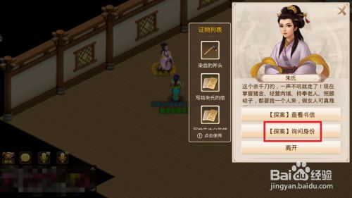 原路返回前去赵府,对话赵氏,利用“写给朱二嫂的信”后再次对话赵氏,点击对话旁边的赵晚来。(这里的证物提交掉败会被赵氏赶出府邸)