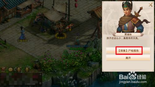 进出神仙镇对话贾捕快(15分钟后取尸检陈述) ,来到常舌馥和小童父亲中心找到带“药粉的糖葫芦”