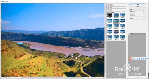 滤镜-艺术结果-干画笔,设置参数:画笔大小最大,而画笔细节为5,纹理为1。可以按照照片进行恰当改动。