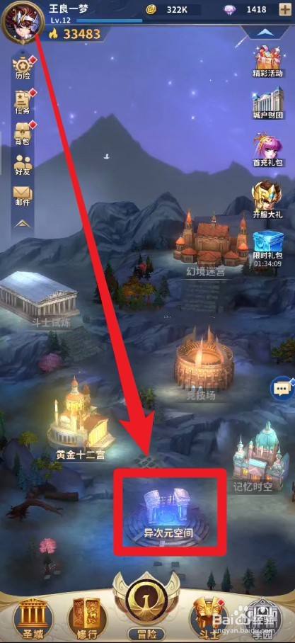 第三步:在修行界面中,点击异次元空间