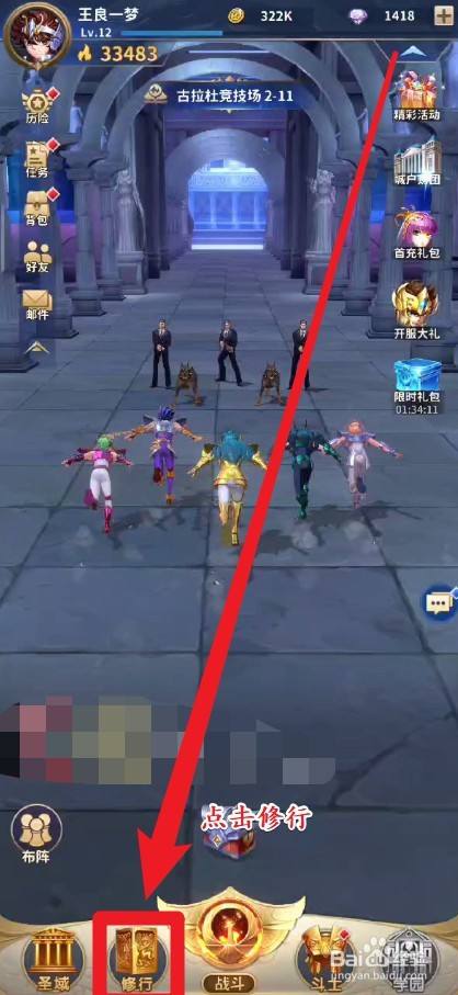 第二步:进入游戏界面后,点击左下角的修行