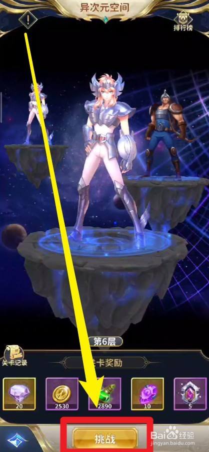 第四步:在异次元空间中,点击挑战。然后在选择挑战声势