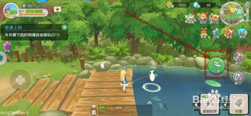 工具/原料荣耀9xEMUI10.1.0.132四时物语1.1.10方式/步骤1进入游戏本家儿界面,点击右下角左侧的装备栏。2点选“耕具”,点击装备垂钓竿。23来到水池边,点击“垂钓”。4当鱼儿咬钩,水面泛起涟漪时,快速点按右侧垂钓按钮,将黄色小滑块节制在绿色区域,进度条走满时即可当作功钓到鱼。END