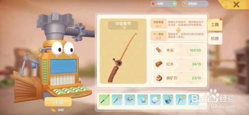 点击进级,耗损材料和600摩尔豆,即可进级鱼竿。