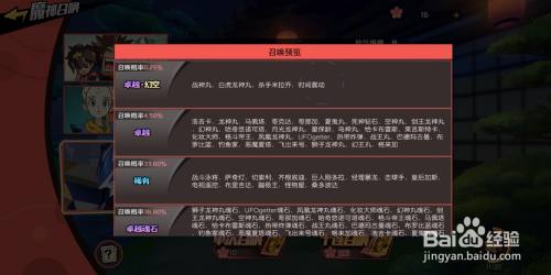 魔神、友情呼唤的出货概率如下:幻空0.25%、卓越4.5%、罕见33.6%、卓越魂石36.8%;限制呼唤的出货概率则是:卓越4.51%、罕见18.09%、卓越魂石36.89%。