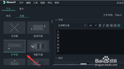 将文字设置为竖排后,在文本动画中找到打字机选项点击确定