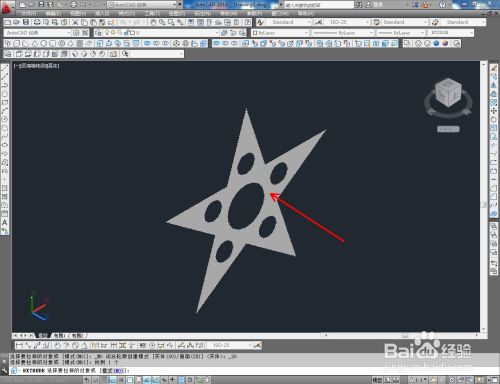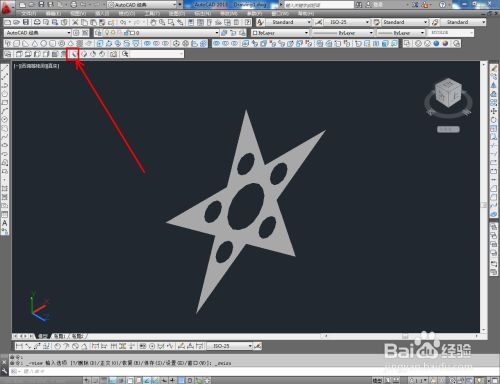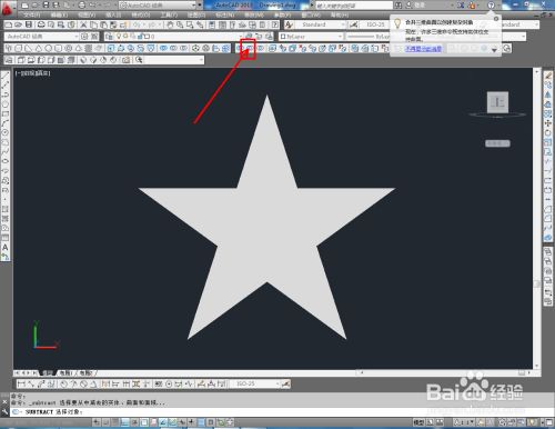 点击【面域东西】按图示将圆形和星形转换为面域图案后,点击实体编纂东西栏中的【差集东西】,对面域图案进行差集操作,生当作镂空星形面域图案;