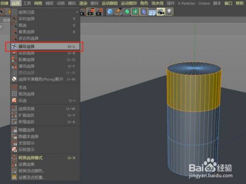 在东西顶用切刀东西切三刀,点击选择找到轮回选择,右键鼠标进行挤压