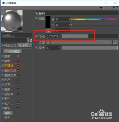 打开编纂界面找到并封闭漫射通道,选择镜面通道点击HSV将颜色调节为深灰色