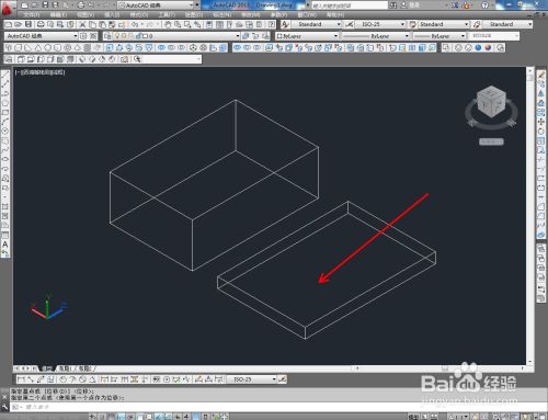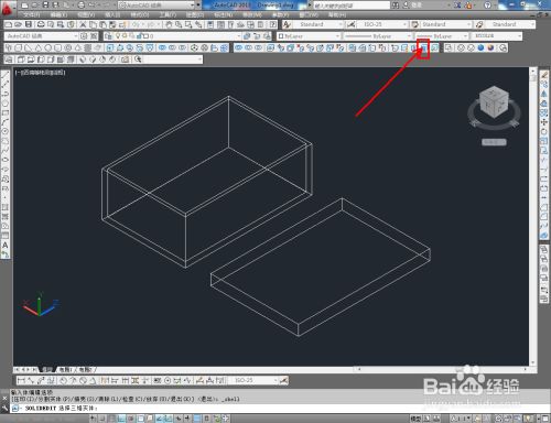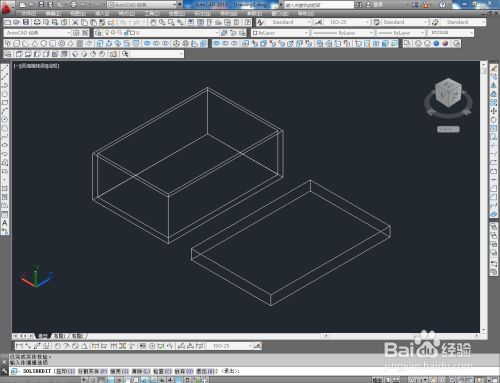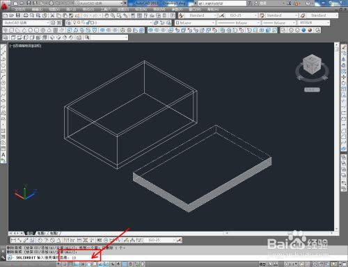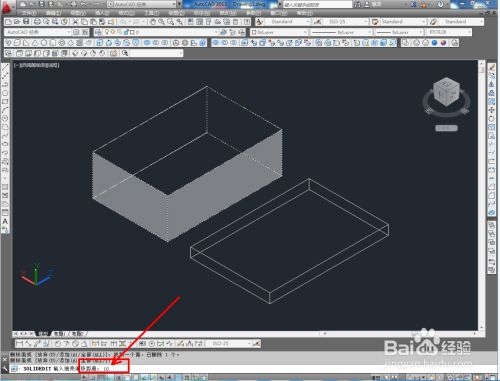 点击实体编纂东西栏中的【抽壳东西】,选中图示长方体模子后,点击模子顶面并按下空格键,在号令栏中输入抽壳偏移距离并按下空格键,生当作盒身模子;