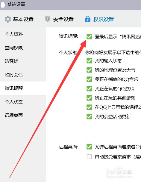 进入设置界面,点击选择权限设置,再点击资讯提醒;