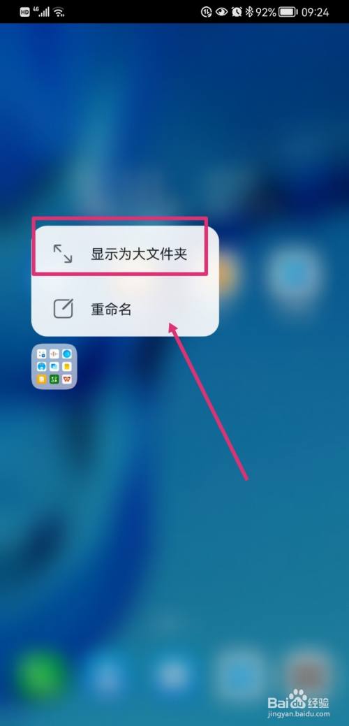 长按文件夹,可以选择“显示为大文件夹”,文件夹即可酿成大号文件夹了。