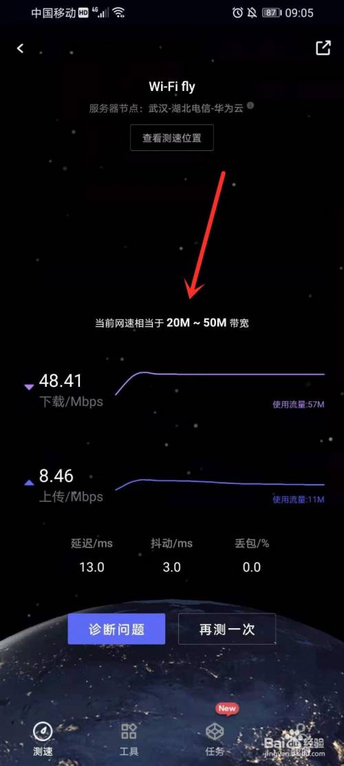 打开花瓣测速APP首页,点击【起头测速】,即可查看手机网速。
