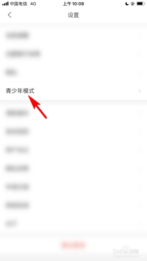 在设置中,点击青少年模式的选项。