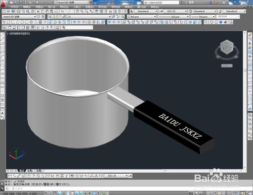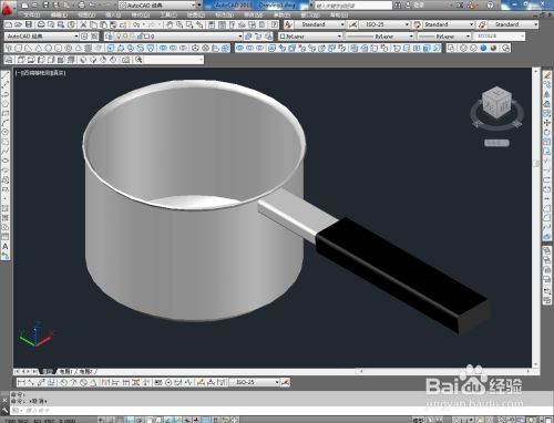 切换到实体显示样式后,点击【颜色节制】按图示为奶锅把手模子设置好颜色即可。以上就是关于CAD三维建模——奶锅把手建造方式的所有介绍。