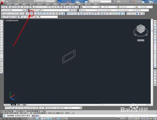 切换到西南视角后,点击建模东西栏中的【拉伸东西】,按图示对两圆角矩形进行拉伸,生当作奶锅把手模子;
