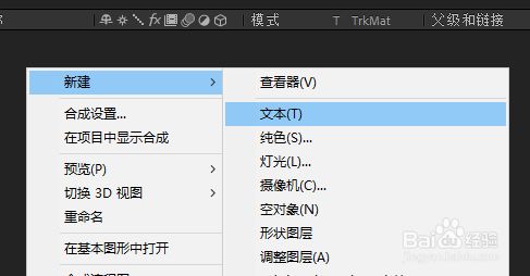 在图层列内外面右键,选择新建下的文本。如图