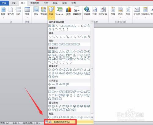 点击【外形】选项,在跳出的下拉面板中选择底部的【新建画图画布】。