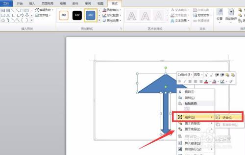最后,我们再点击鼠标右击,选择【组合】,如下图,两个自选外形就被组合起来了。