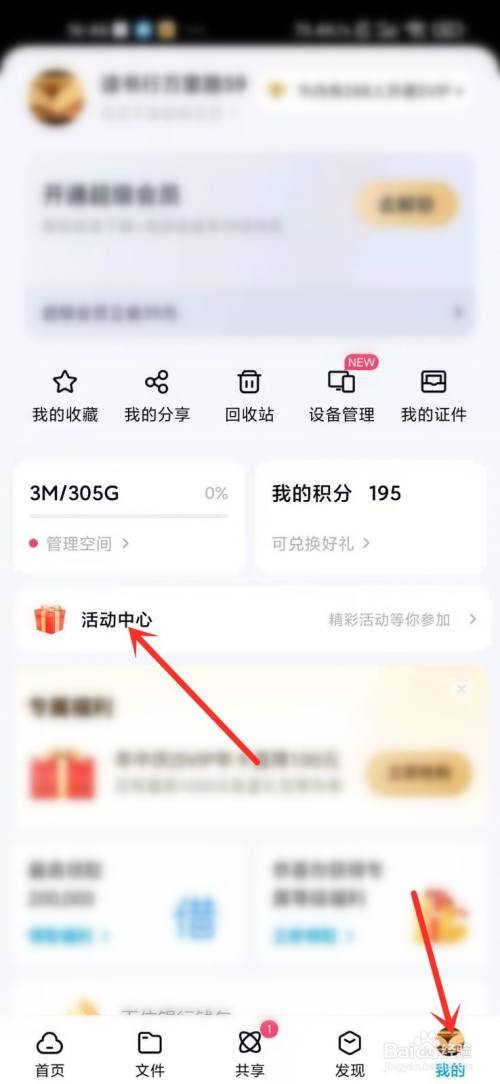 END进入我的界面,打开活动中间。