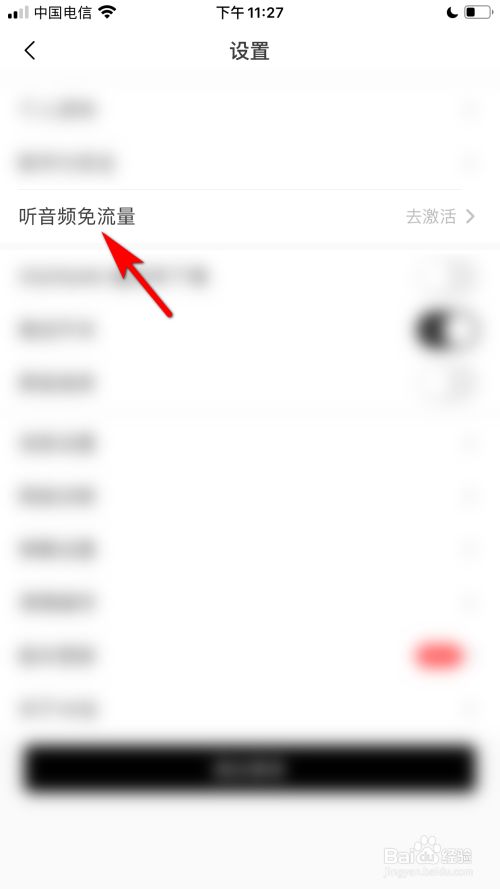 进入设置后,点击听音频免流量的选项。