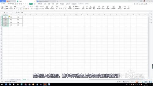 进入表格后,选中单位格左上角有三角图标的数据。