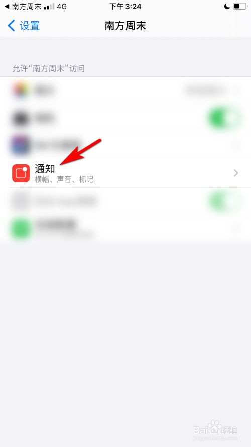 封闭许可通知的选项后方的开关,即可设置禁止推送通知。