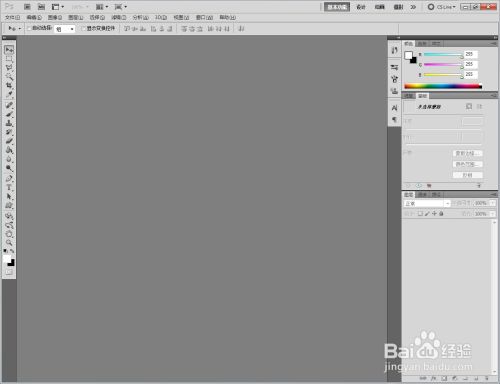 打开Adobe Photoshop CS5软件,进入软件作图界面;