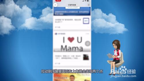 4、拉动到浮窗里面后左上角就会呈现两个点。
